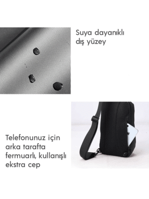 AOKING 9050 SİYAH Çapraz Göğüs Çantası I Suya Dayanıklı Hırsızlığa Karşı Güvenlikli