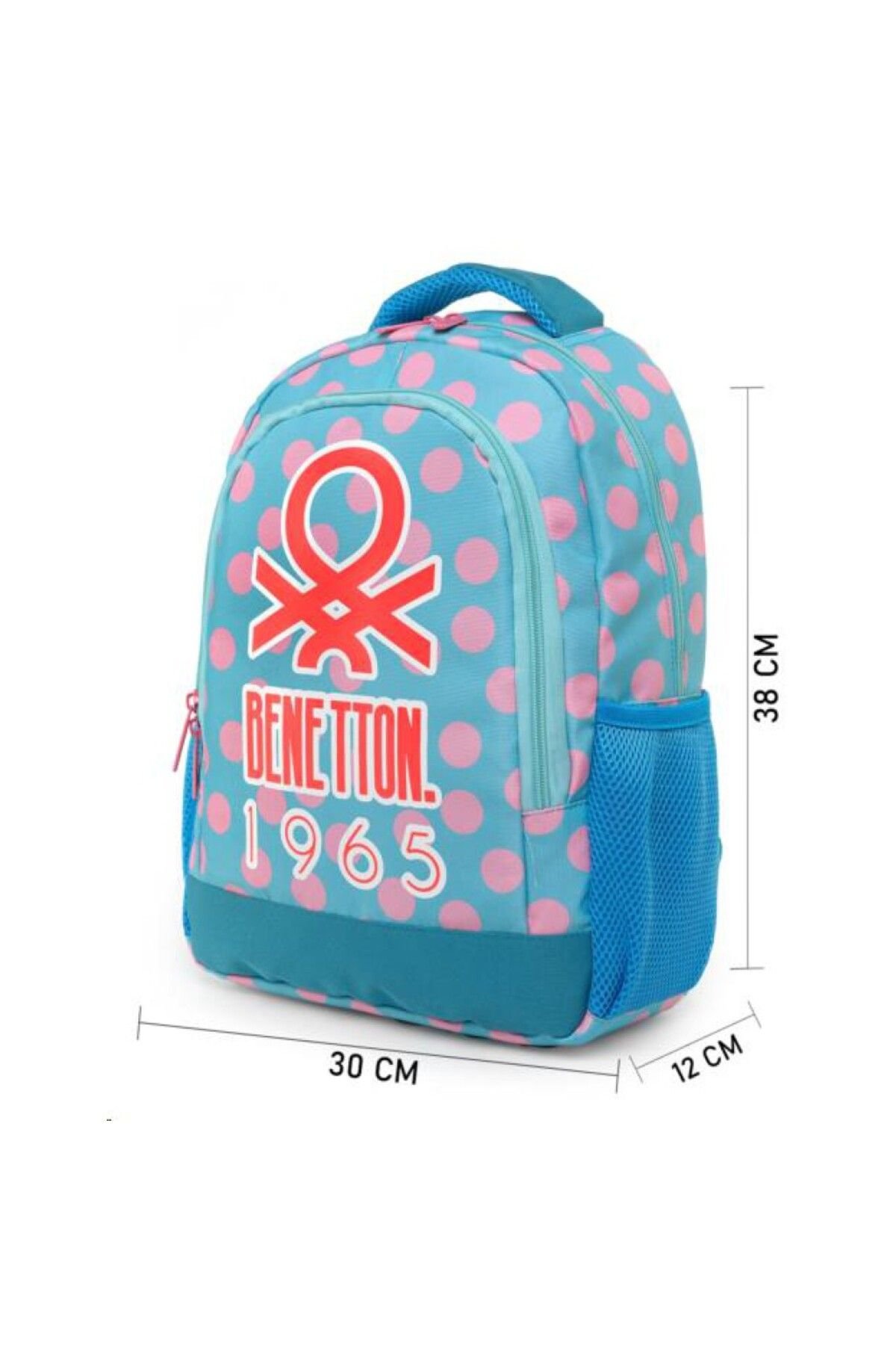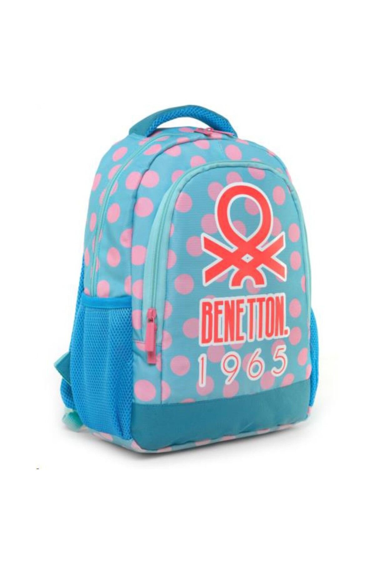 📌 BENETTON Puantiyeli Kız Çocuk İlkokul Sırt Çantası – Renkli, Neşeli ve Konforlu!