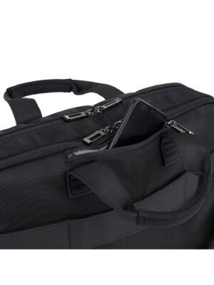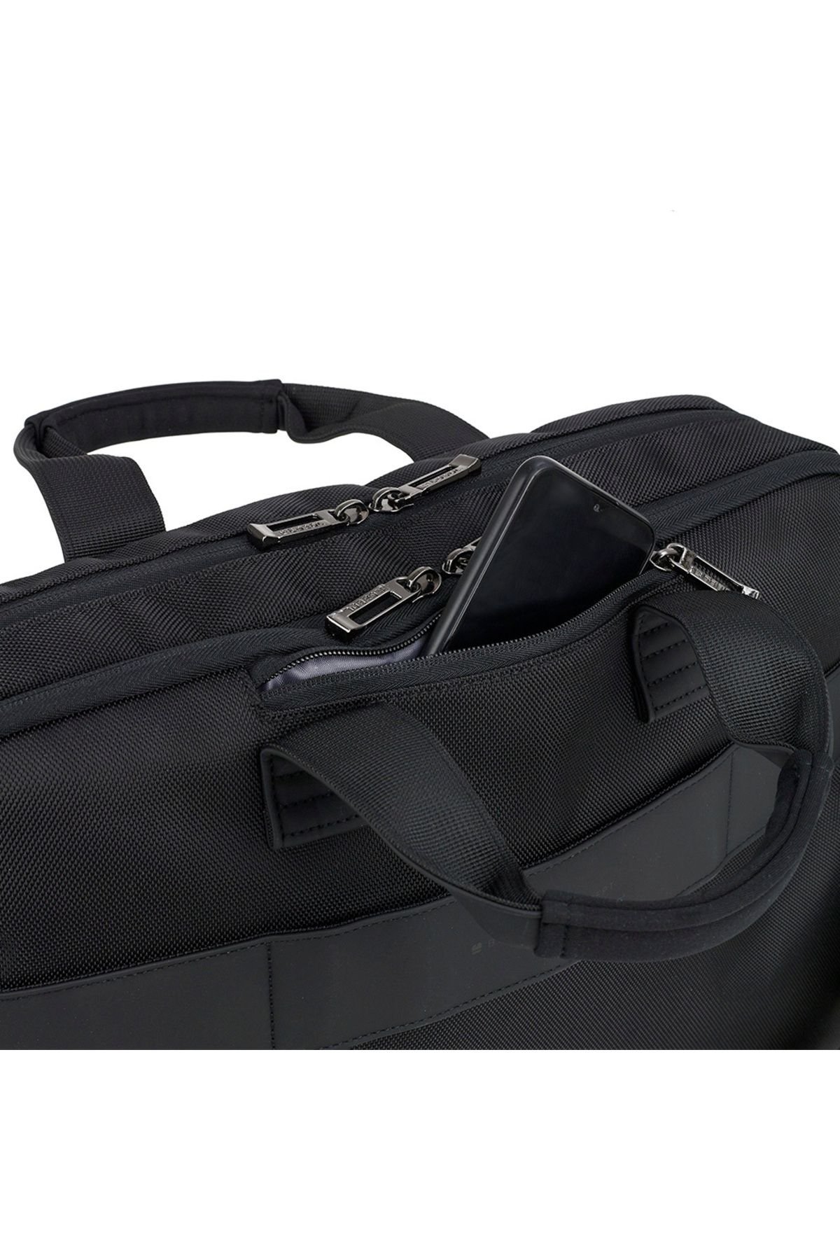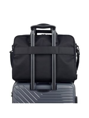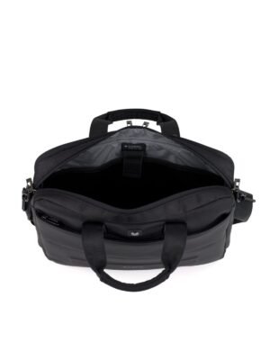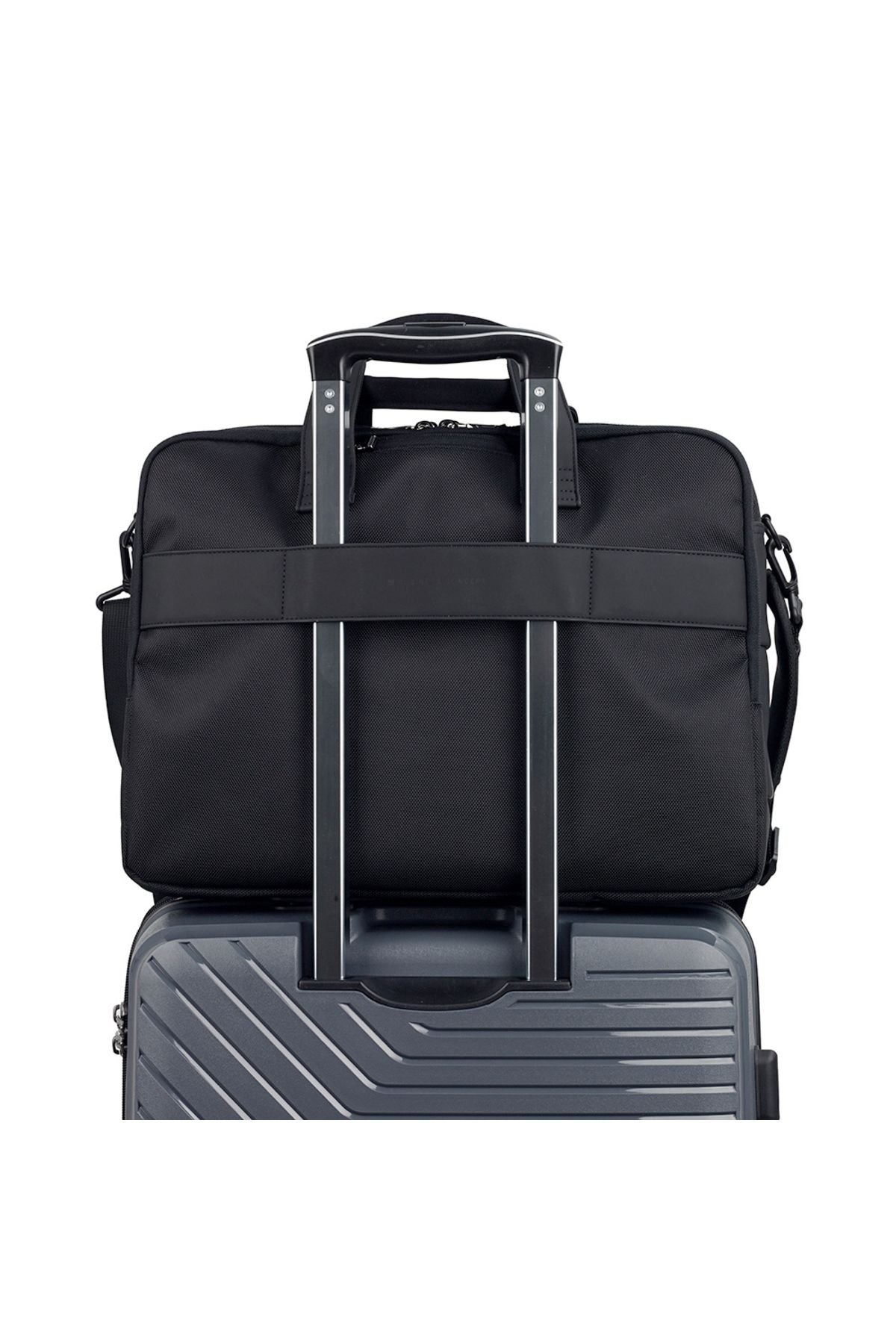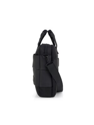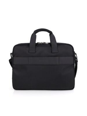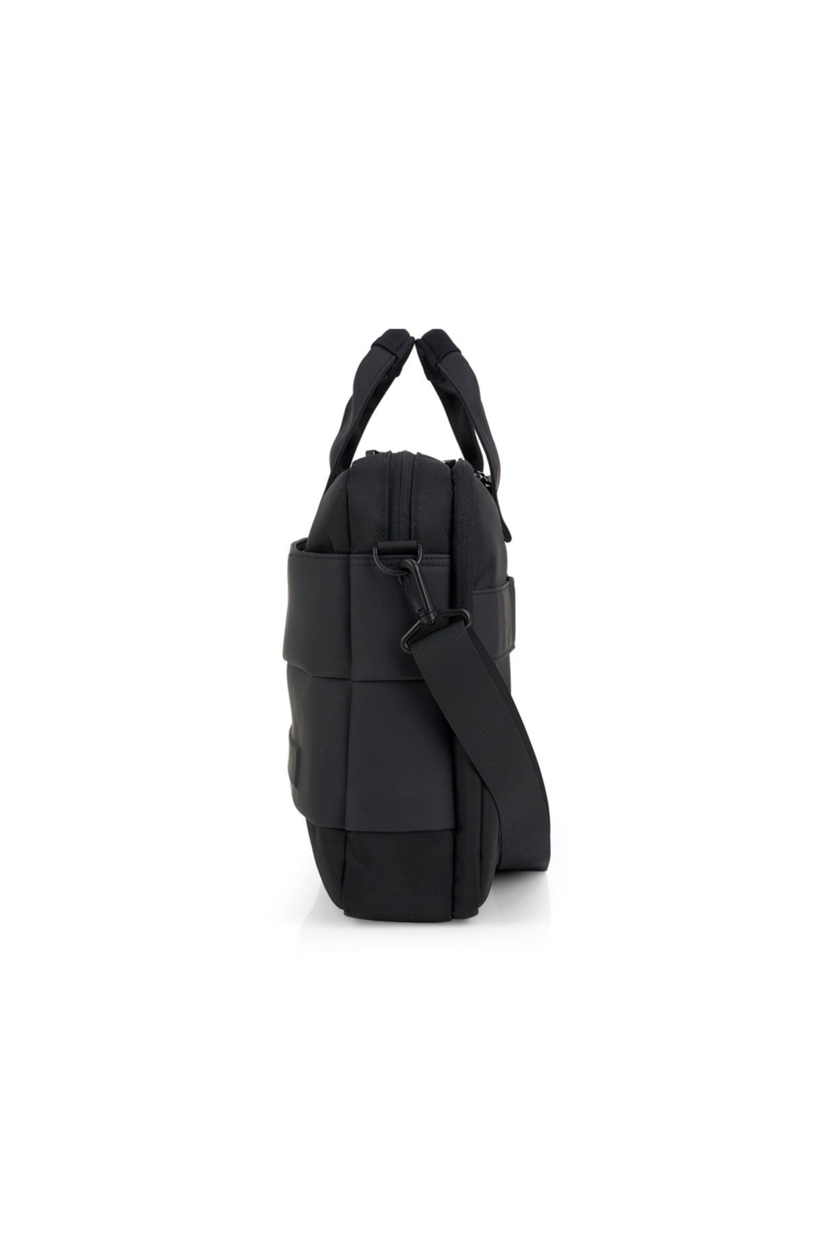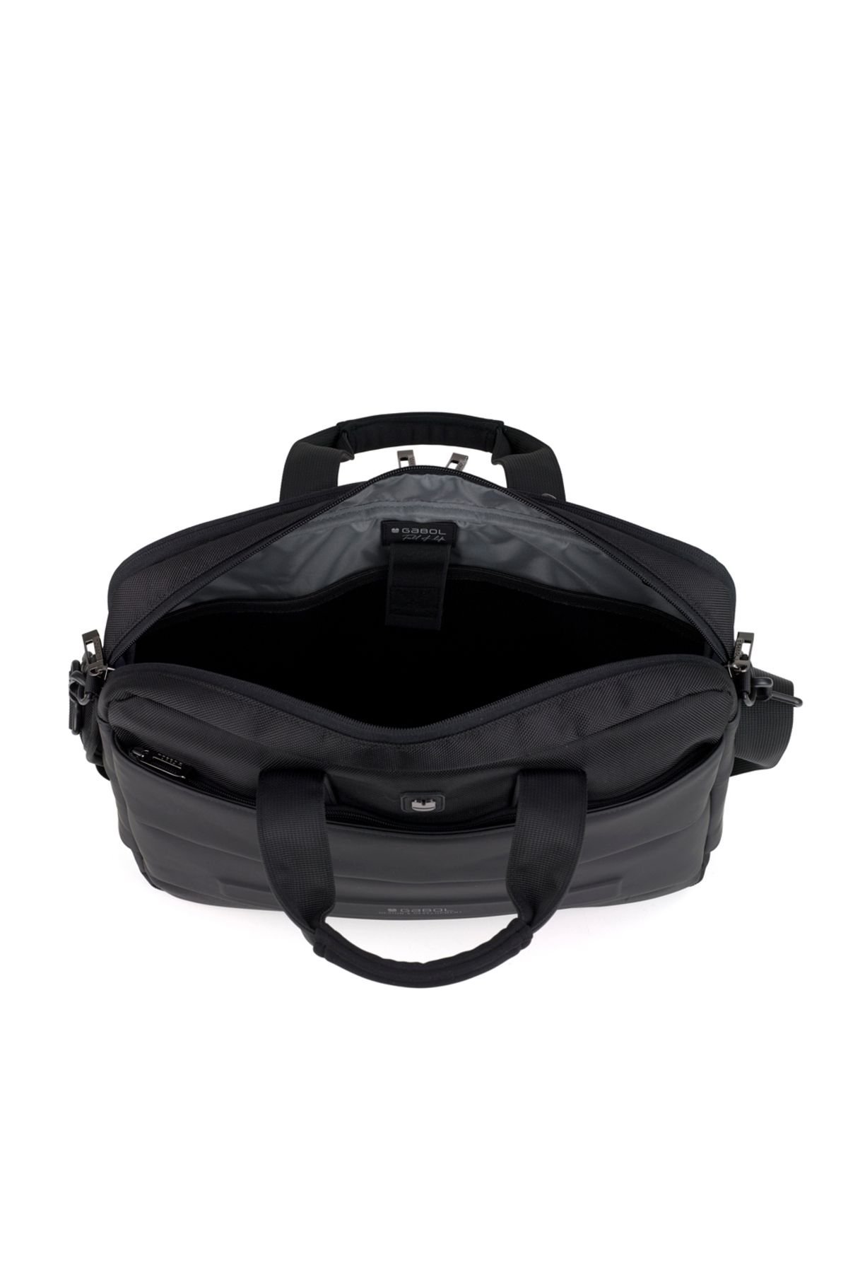 GABOL CAPITAL koleksiyonuna ait bu siyah laptop evrak çantası, 15.6 inç dizüstü bilgisayarlar için tasarlanmıştır. Suya dayanıklı suni deri ve polyester karışımı materyali sayesinde dayanıklılık sunar. İki geniş bölmesi, iç dolgulu laptop gözü ve organizatör cepleriyle hem işlevsel hem de profesyonel bir görünüm sunar. Bavula sabitlenebilir yapısı ve güçlendirilmiş tabanı ile iş seyahatlerinizde ideal bir yardımcıdır.