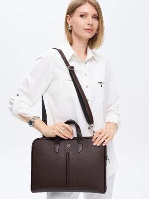 MacBook Air Pro 13 ve 14 inç modelleri için özel olarak tasarlanmış, suya ve tere karşı dayanıklı yapısıyla cihazınızı her türlü hava koşulunda korur; El ve omuz taşıma seçenekleriyle rahat kullanım sunan bu çanta, günlük kullanım için idealdir; Kahverengi renk seçeneğiyle şık ve profesyonel bir görünüm sağlar;