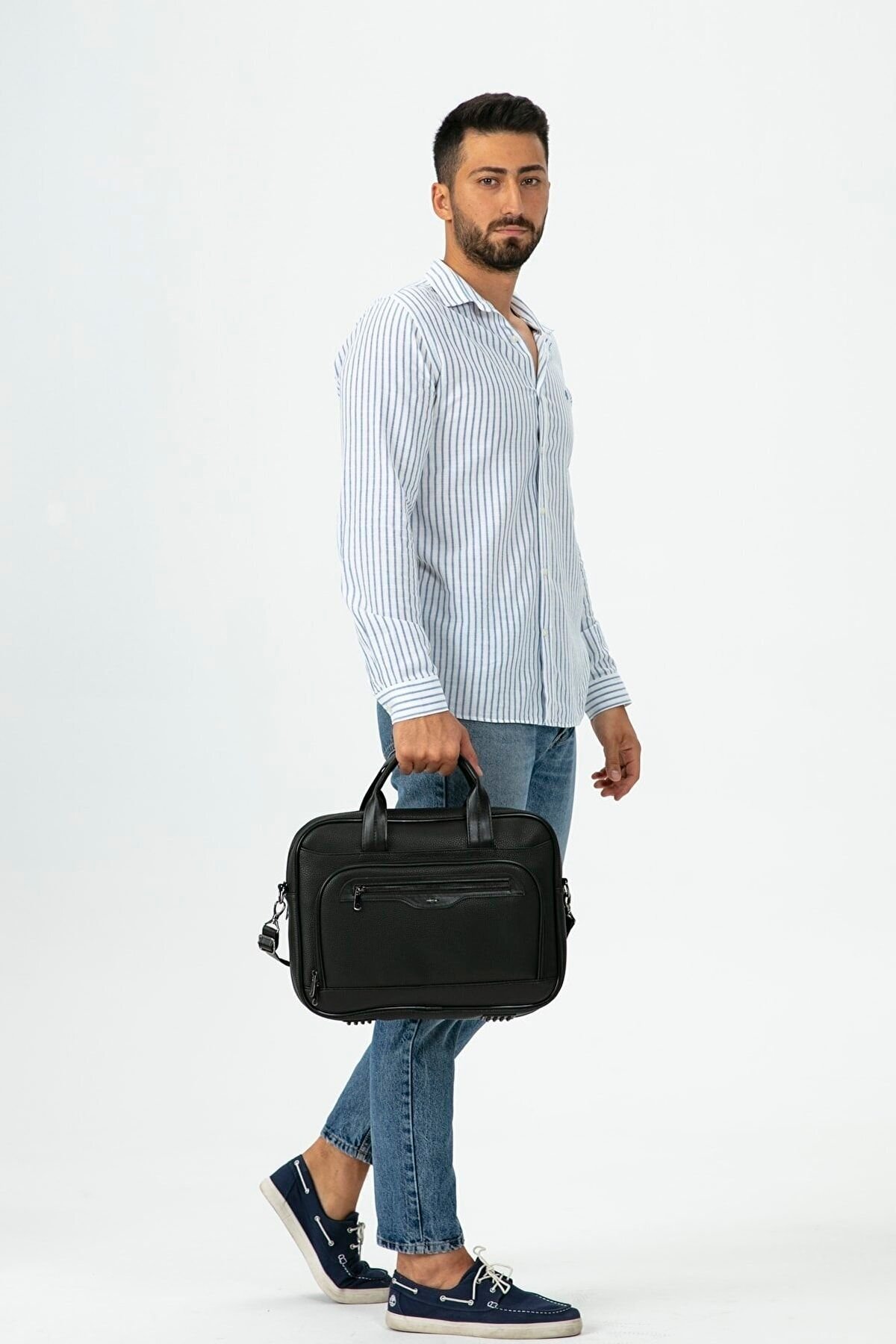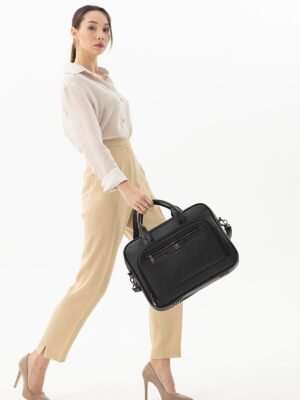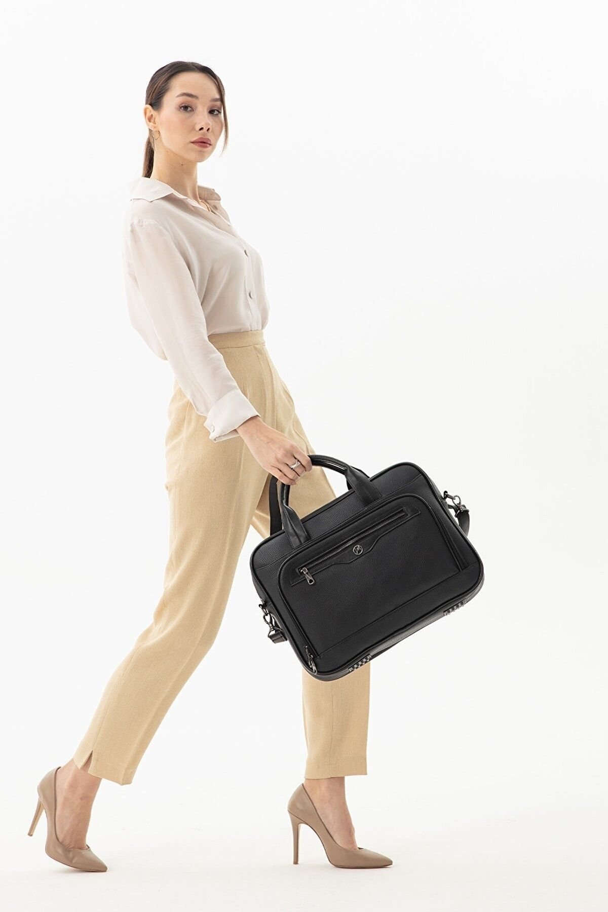 Unisex Elde Ve Omuzda Ayarlanabilir Askılı Deri 14″&15.6″ Notebook Evrak&laptop Çantası Siyah